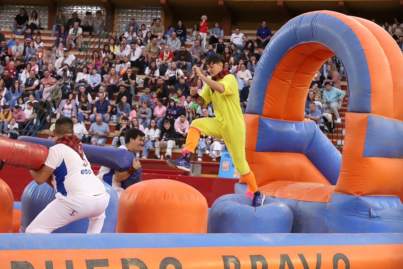 Ruedo Bravo presenta un espectáculo diseñado para el máximo entretenimiento de participantes y público de todas las edades. Es la actividad perfecta para grupos de amigos o peñas que busquen un reto divertido: los equipos deberán superar originales pruebas de habilidad sobre la arena y divertidos obstáculos hinchables, para terminar la competición en la zona de becerras.